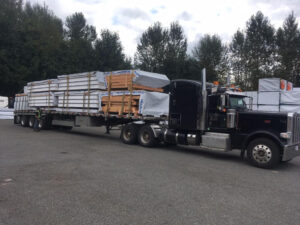 This home design was based on our award winning “Gambier” plan. The house package was shipped duty free across the border, and Tamlin managed to fit the entire prefabricated “shell” of the building on four 53 foot trucks! Our shipping team coordinated with the home owner and his local builder to ensure that the “fleet” of trucks arrived safely and on time.